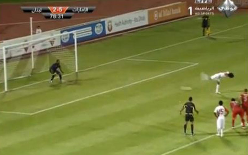 UAE footballer Theyab Awana may have raised the ire of officialdom with his freak backheeled penalty in an international friendly against Lebanon.