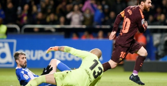 The Argentinian star scored a brilliant 30th La Liga hat-trick as Barca survived a scare to beat Deportivo La Coruna 4-2, wrapping up the club's 25th league title with four matches to spare and keeping their hopes of an unbeaten season alive.