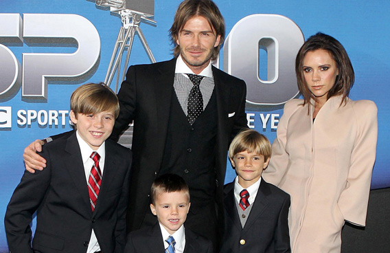 Beckham family, with David and Victoria Beckham, and their sons, from left to right, Brooklyn, Cruz and Romeo. (AP)
