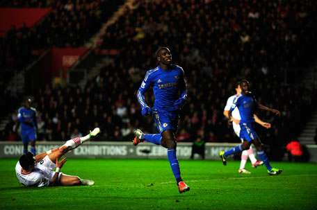 Chelsea's Demba Ba celebrates after scoring a goal during their FA Cup match against Southampton at St Mary's Stadium in Southampton, England on January 5, 2013. (REUTERS)