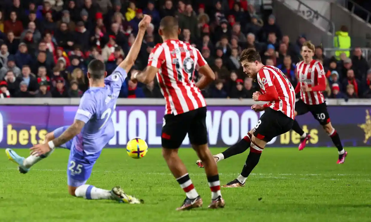 After a scrappy opening spell, Brentford took charge of the game, peppering balls into the Bournemouth area, one of which ended with Toney cleverly winning a penalty during a tussle with defender Marcos Senesi.