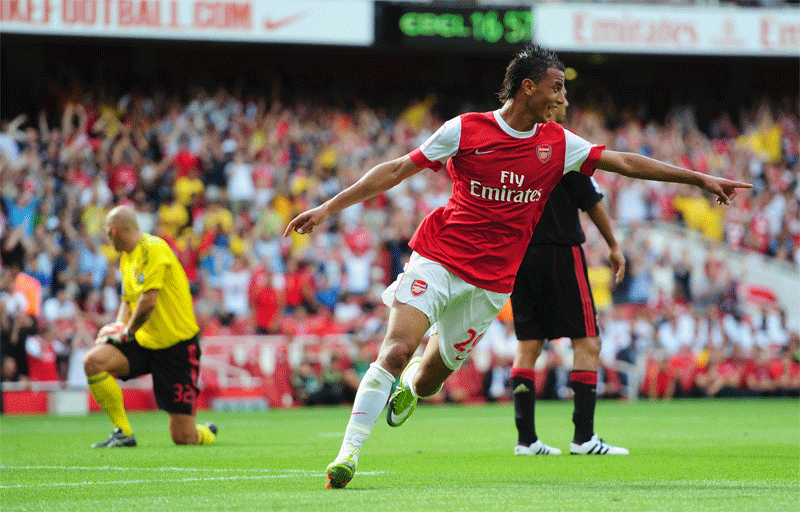 Marouane Chamakh of Arsenal celebrates after scoring during the Emirates Cup match between Arsenal and AC Milan at Emirates Stadium. (GETTY)