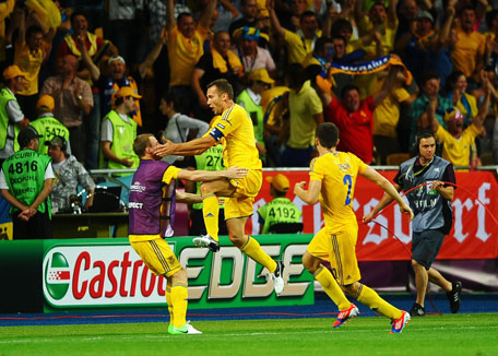 Ukraine's Andriy Shevchenko celebrates after scoring a goal against Sweden. (FILE)