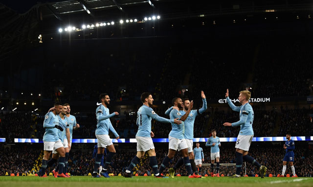 With a cleverly taken free kick down the right, Kevin De Bruyne released Bernardo Silva, who cut back for Sterling to strike into the net.