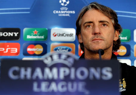 Manchester City manager Roberto Mancini during a press conference at Carrington Training Ground on Tuesday in Manchester, England. (GETTY)