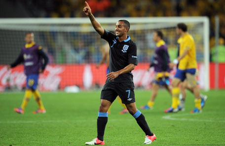 Theo Walcott of England celebrates victory during the UEFA Euro 2012 group D match against Sweden at The Olympic Stadium on Friday in Kiev, Ukraine. (GETTY)