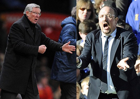 Coach Sir Alex Ferguson of Manchester United and Rafael Benitez (right) of Chelsea. (Agencies)