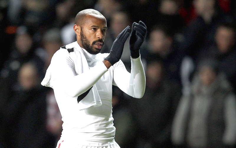 Thierry Henry of Arsenal applauds after the Barclays Premier League match between Swansea City and Arsenal at Liberty Stadium in Swansea, Wales. (Getty Images)