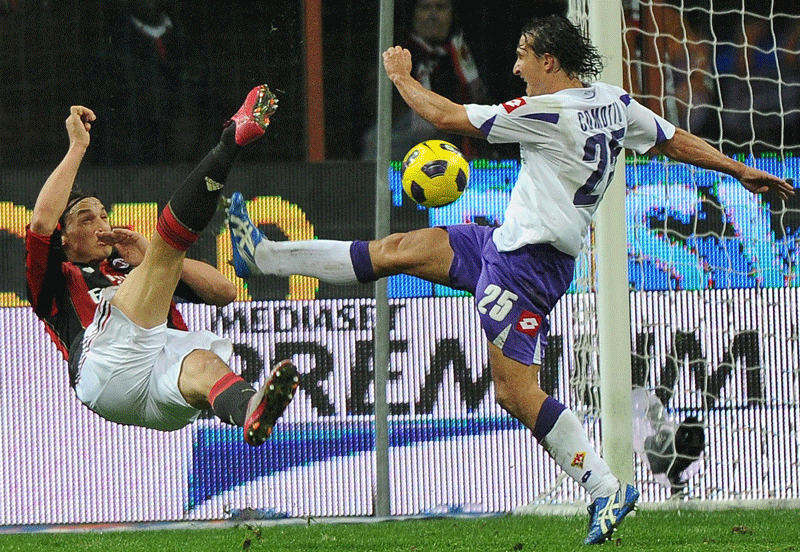 On 45 minutes, with his back to goal, the Swede juggled the ball and executed an acrobatic bicycle kick which totally flummoxed Fiorentina keeper Artur Boruc, the ball thudding into the top far corner.