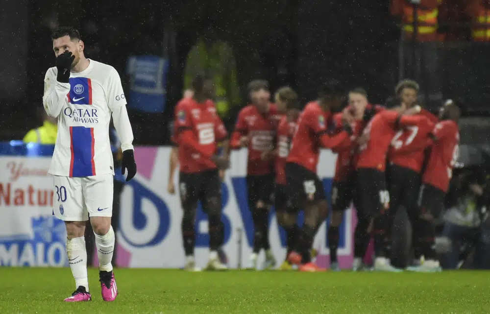 Lionel Messi, Neymar and Kylian Mbappé couldn't stop Paris Saint-Germain losing 1-0 at Rennes for a second straight away defeat in the French league on Sunday as its lead over second-place Lens dropped to three points.