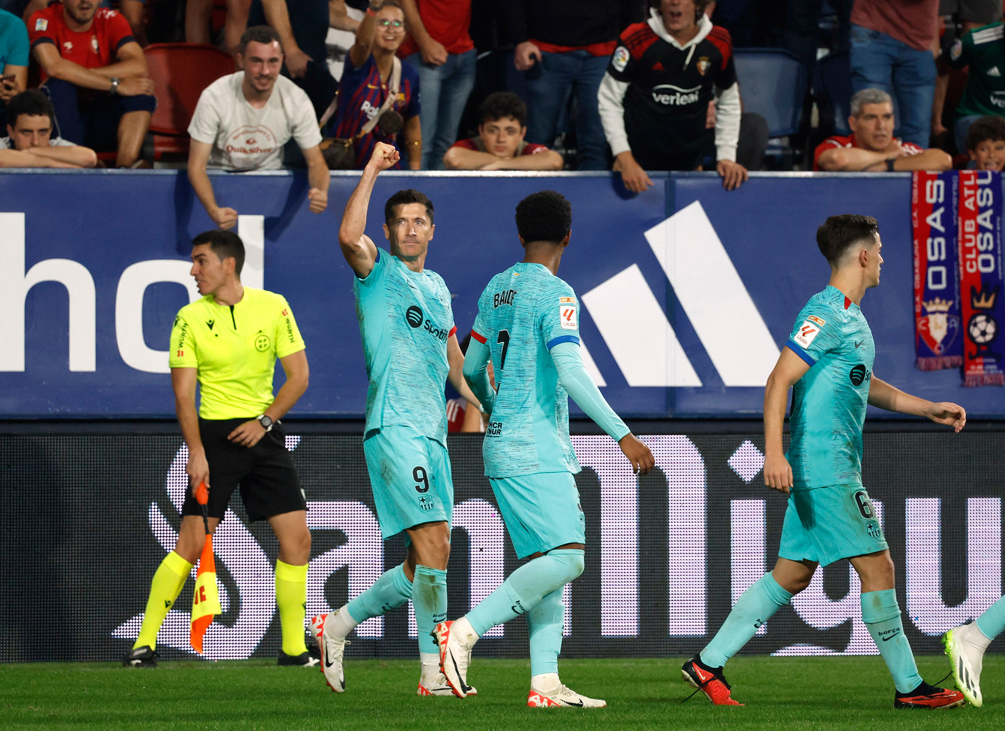 Robert Lewandowski's late penalty earned Barcelona a hard-fought 2-1 win at Osasuna on Sunday as the defending LaLiga champions secured their third consecutive victory after starting the season with a goalless draw at Getafe.