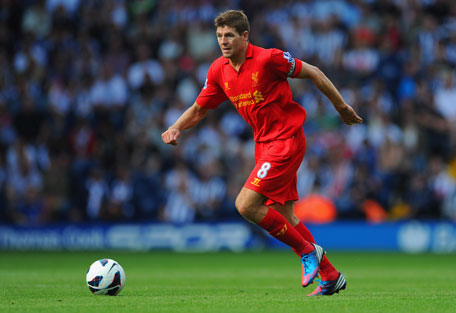 Steven Gerrard of Liverpool in action during the Barclays Premier League match against West Bromwich Albion at The Hawthorns on Saturday in West Bromwich, England. (GETTY)