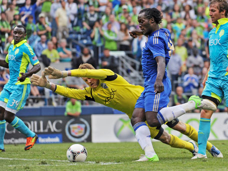 Fredy Montero scored twice in the first half for the Sounders but they were unable to muster enough attack in the second half in front of a crowd of 53,309 at Century Field.