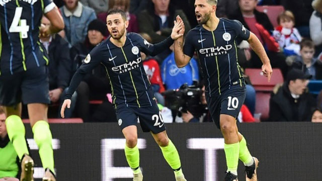 The game swung back in back in City's favour just before the break as James Ward-Prowse turned Raheem Sterling's cross into his own net before Alex McCarthy couldn't keep out Sergio Aguero's header.