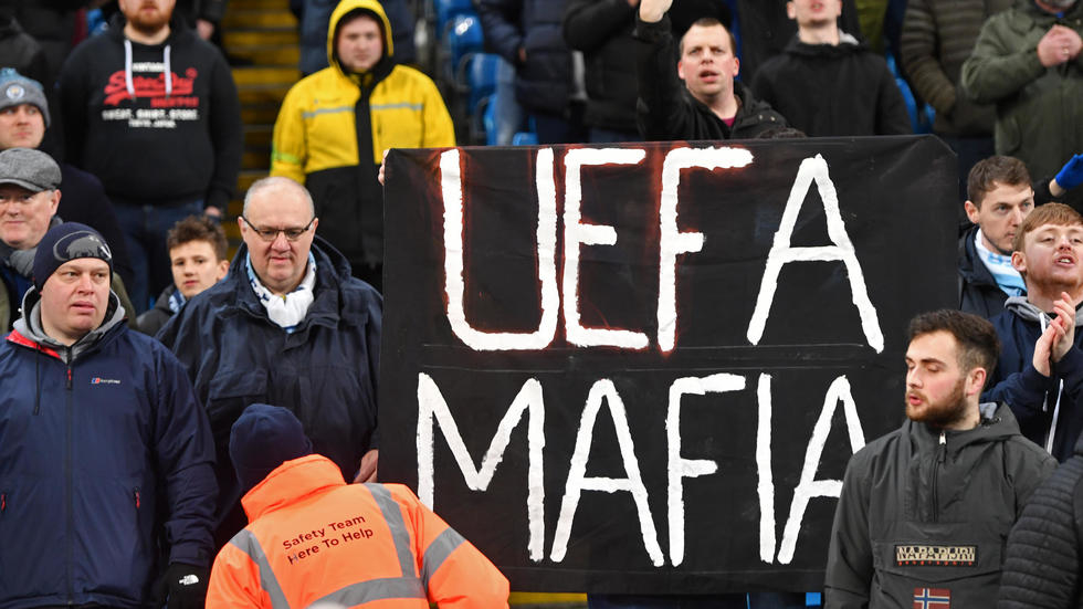 "UEFA Cartel" and "UEFA Mafia" were among the banners that greeted their first home outing since the ban was handed down against West Ham last week.