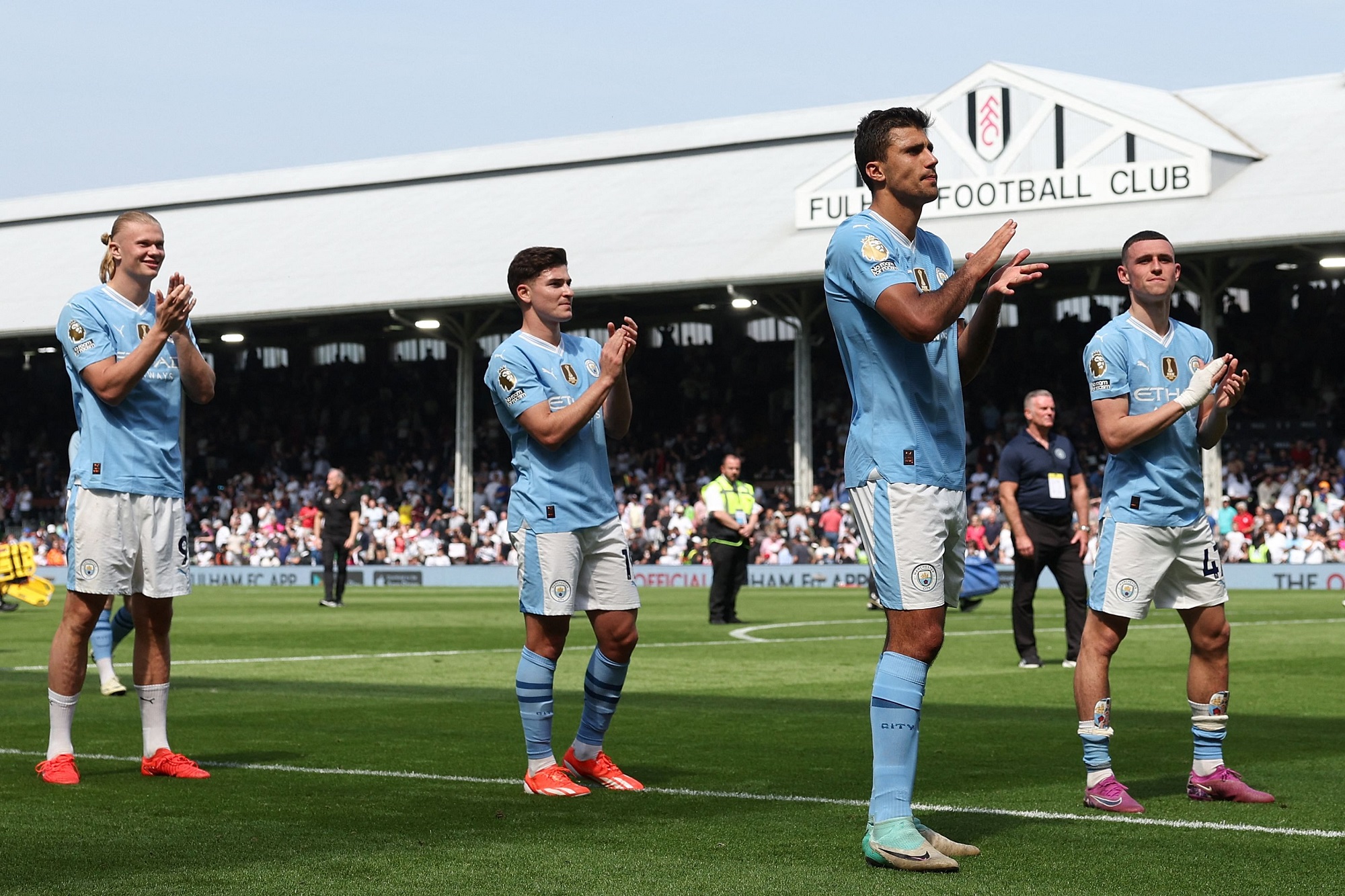 Manchester City achieved an unprecedented feat in the Premier League tonight by winning the title four times in a row, from the 2020-2021 season to the 2023-2024 season, a feat no other English club has achieved in the history of the Premier League.