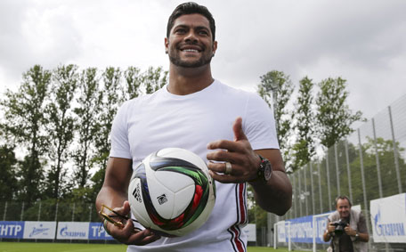 Zenit St. Petersburg's Hulk poses for pictures at Zenit's training center in St. Petersburg, Russia, in this July 20, 2015 file photo. Hulk has pulled out of Saturday's World Cup qualifying draw, only days after complaining of "gross and ugly" racism in Russian football. FIFA said that Hulk will be replaced by former Russia captain Alexey Smertin as one of the draw assistants for Saturday's event in St Petersburg. (REUTERS)