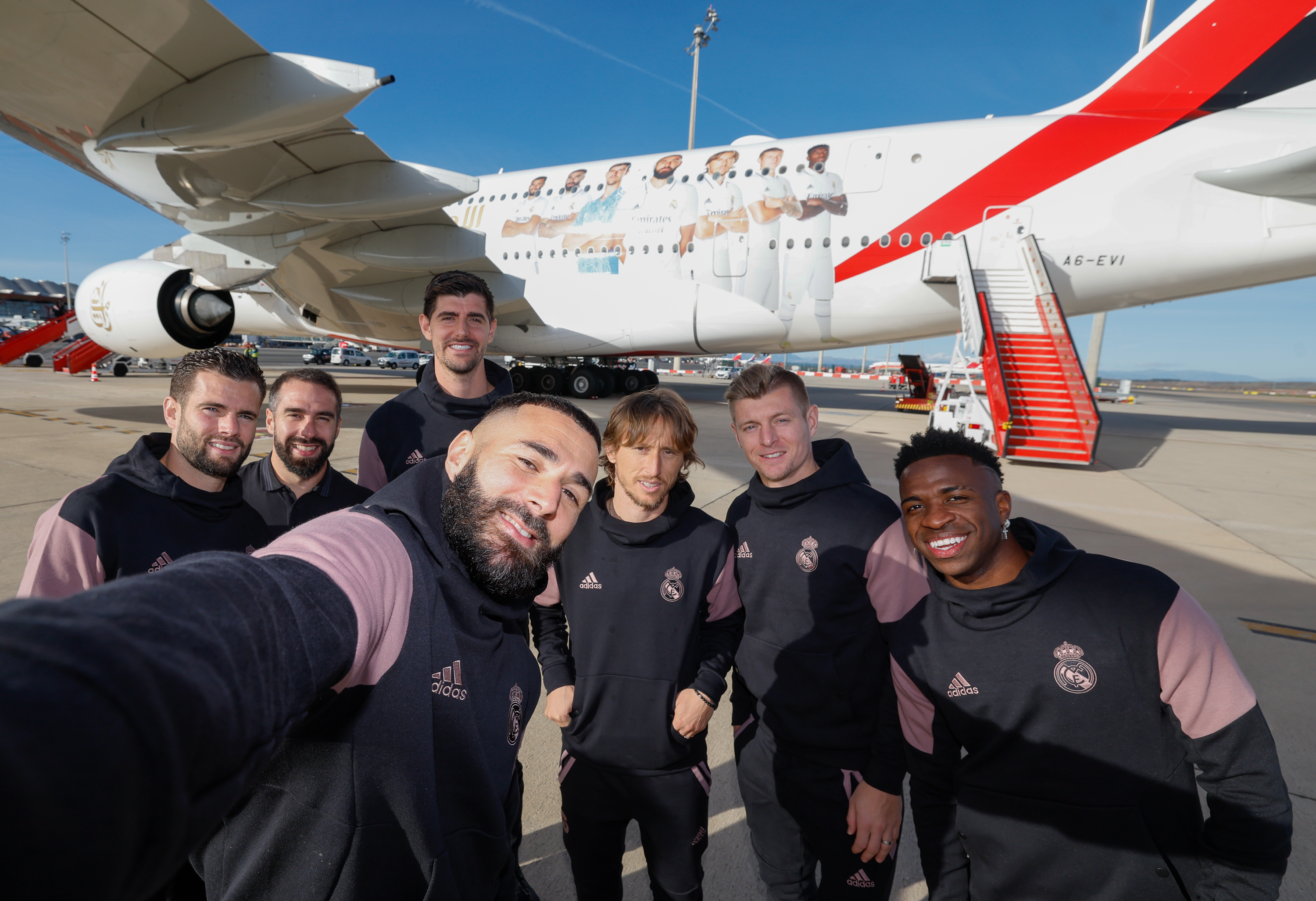 Emirates, the world’s largest international airline and Official Main Sponsor of Real Madrid, welcomed the Spanish football club onboard a specially chartered A380 flight from Madrid to Riyadh yesterday. The iconic double-decker aircraft featured a new livery with some of the club’s top players.