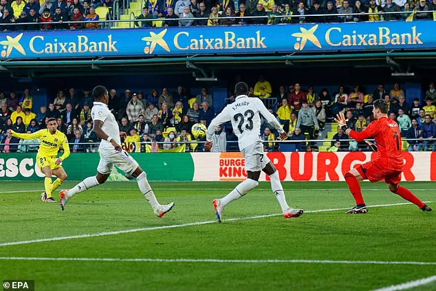 Substitute Arnaut Danjuma squandered a golden opportunity to seal the game for Villarreal in added time, missing an open goal with his effort from the halfway line as Courtois was stranded deep in opposition territory after going up for a corner.