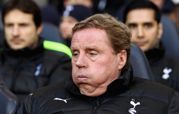 Harry Redknapp the Spurs manager looks on from the dugout during the Barclays Premier League match between Tottenham Hotspur and Wolverhampton Wanderers at White Hart Lane on January 14, 2012 in London, England. (GETTY)
