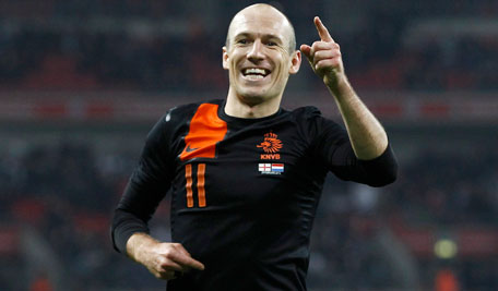 Holland's Arjen Robben celebrates scoring the winning goal during their international friendly against England at Wembley Stadium in London on February 29. (REUTERS)