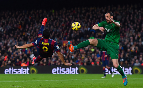 Messi netted a record-equalling 23rd La Liga treble in the 5-0 victory at home to Levante before Suarez came off the bench and acrobatically smashed in what was only his fourth La Liga goal in 14 appearances this term.
