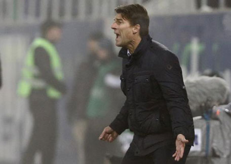 Swansea City's manager Michael Laudrup reacts during a Europa League soccer match against St. Gallen in St. Gallen December 12, 2013. (REUTERS)