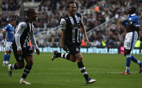 Yohan Cabaye of Newcastle United celebrates after scoring against Wigan Athletic at St James' Park on October 22. (Getty)