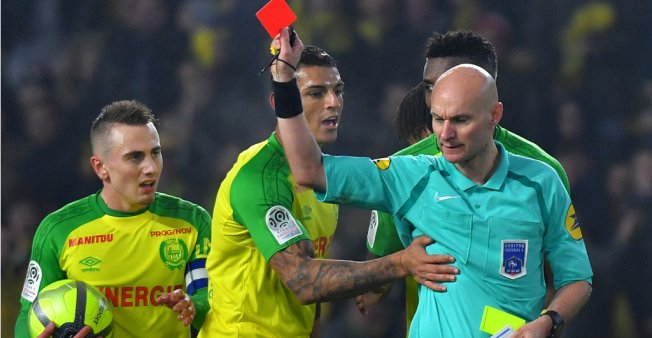 Nantes midfielder Valentin Rongier had a good view of the incident and called for the referee to be given a long ban.