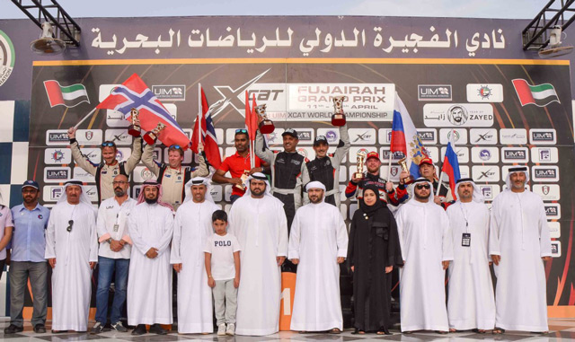 H.H. Sheikh Mohammed bin Hamad bin Mohammed Al Sharqi, Crown Prince of Fujairah, crowned Arif al Zaffein and Nader bin Hendi of the Dubai Police as winners of the opening race of the 2018 UIM XCAT World Championship in Fujairah.