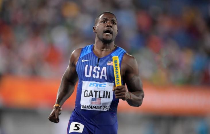 Run down by Canadian Olympic medallist Andre De Grasse in the earlier heats, Gatlin romped home in the final, leading the U.S. team of Leshon Collins, Mike Rodgers and Ronnie Baker to victory in 38.43 seconds.