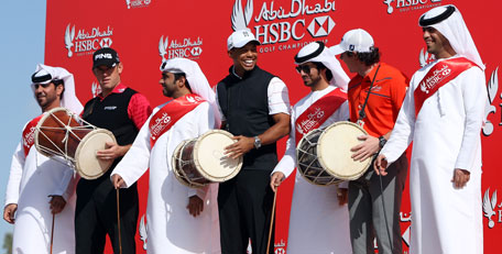 Earlier, Tiger joined world numbers two and three, Lee Westwood and Rory McIlroy, for a celebration of traditional Emirati ayala (celebration) dancing.