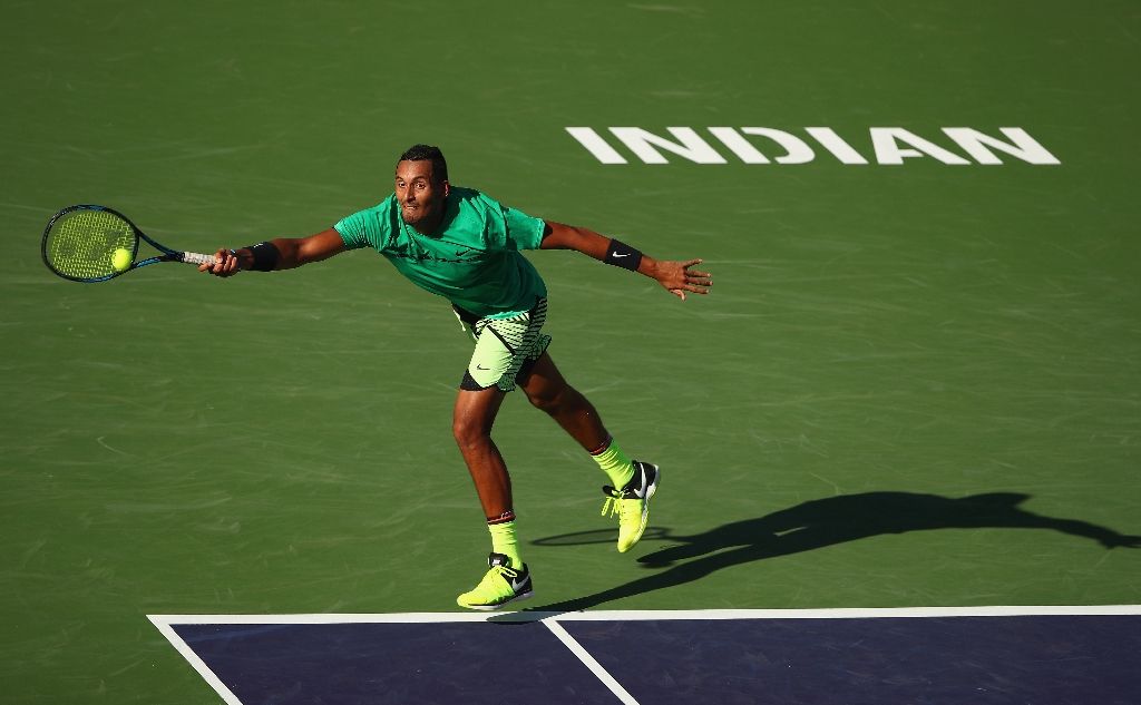 Nick Kyrgios overpowered Novak Djokovic for the second time in as many weeks on Wednesday to book an Indian Wells quarter-final against Roger Federer, who swatted aside old foe Rafael Nadal.