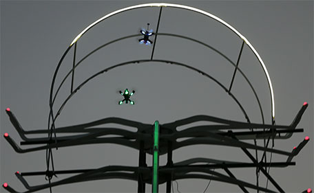 Two drones race during the final day of the first World Drone Prix in Dubai, United Arab Emirates, Saturday, March 12, 2016. (AP)