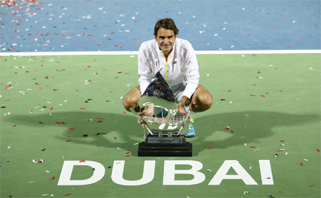 Roger Federer claimed the 84th title of his legendary career, kept his nose in front in his personal rivalry with Novak Djokovic, and equalled his best achievement at any tournament by winning the Dubai Open for the seventh time on Saturday.