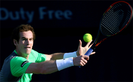 Tennis player Andy Murray of Great Britain returns the ball to Gilles Muller of Luxembourg during their match in the second day of the ATP Dubai Duty Free Tennis Championships on February 24, 2015. (AFP)