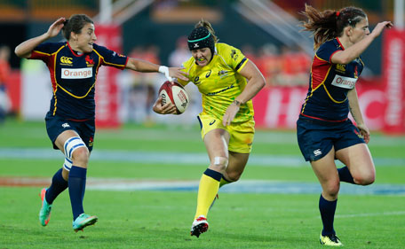 Australian captain Sharni Williams makes a dash during their match against South Africa on Thursday at the Dubai Rugby Sevens. (Supplied)