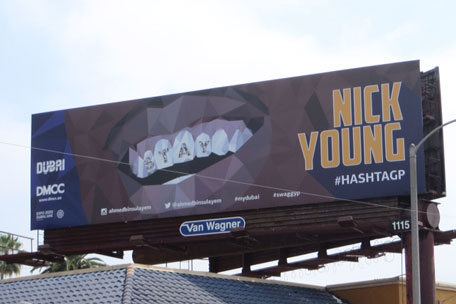 Ahmed Bin Sulayem's advertising campaign to keep Nick Young displayed on a billboard around the Los Angeles Lakers Staples Stadiu. (SUPPLIED)