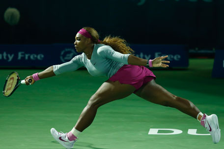 Serena Williams is just one win away from facing sister Venus in Saturday’s final of the Dubai Duty Free Tennis Championships after both claimed straight-set victories on Thursday.