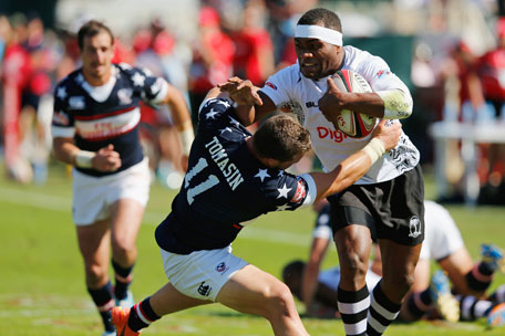 Emosi Mulevoro of Fiji in action during the Emirates Dubai Sevens match against United Statesat The Sevens stadium on November 29, 2013 in Dubai, UAE. (GETTY)