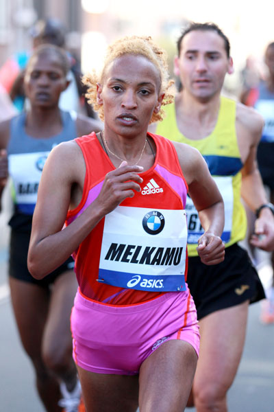 Now 28, Melkamu was one of the world’s best long distance track runners before turning her attentions to the road. She remains the second fastest every at 10,000m and holds the African record of 29m:53.8s.