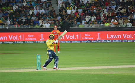 Hafeez hits the first boundary with a classic drive through the covers and Peshawar Zalmi on their way. Zalmi 12-0, 1 over.