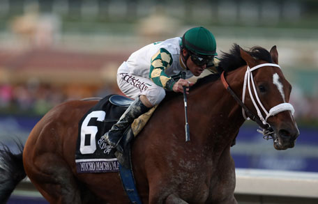 Jockey Gary Stevens rides atop Mucho Macho Man enroute to winning the Classic during the 2013 Breeders' Cup World Championships at Santa Anita Park on November 2, 2013 in Arcadia, California. (GETTY)