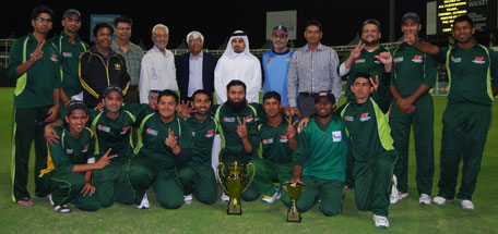 Bukhatir League 'A' division champions Phoenix Medicine with Sharjah Cricket Council officials. (SUPPLIED)