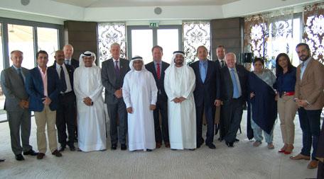 Mohamed Juma Buamaim, vice-chairman and CEO of golf in Dubai, with representatives of Omega Dubai Desert Classic sponsors at Emirates Golf Club. (SUPPLIED)