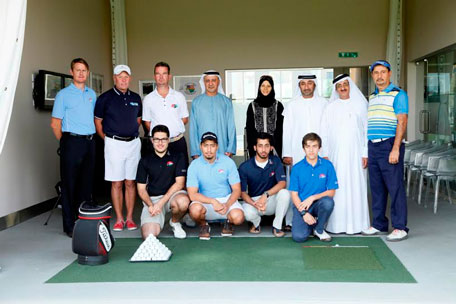 Members of the UAE National Golf Team and (from left) Jason Froggatt, Emirates Golf Federation; Wayne Johnson, Director of Instruction Jumeirah Golf Estates and ETPI; Greg Holmes, EGF National First Team Coach; Adel Zarouni, Vice-Chairman of Emirates Golf Federation; Member of the UAE National Golf Team; Khaled Mubarak Al Shamsi, Secretary General of Emirates Golf Federation; Rashid Al Jarwan, Emirates Golf Federation Board member. (SUPPLIED)