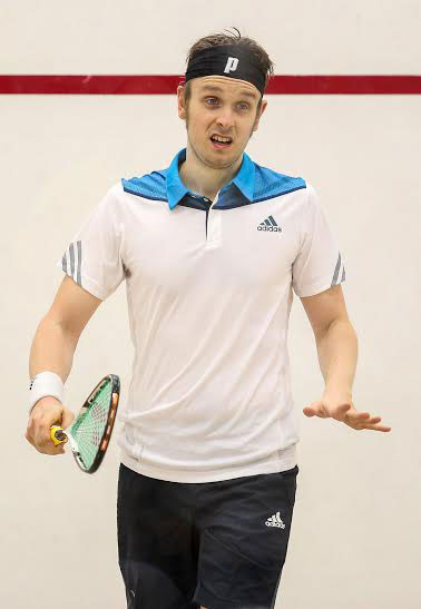 James Willstrop in action during the NAS exhibition squash final. (SUPPLIED)