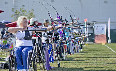Action from the elimination round of the Fazza International Para Archery Championships at the Dubai Club for the Disabled on Sunday. (Supplied)