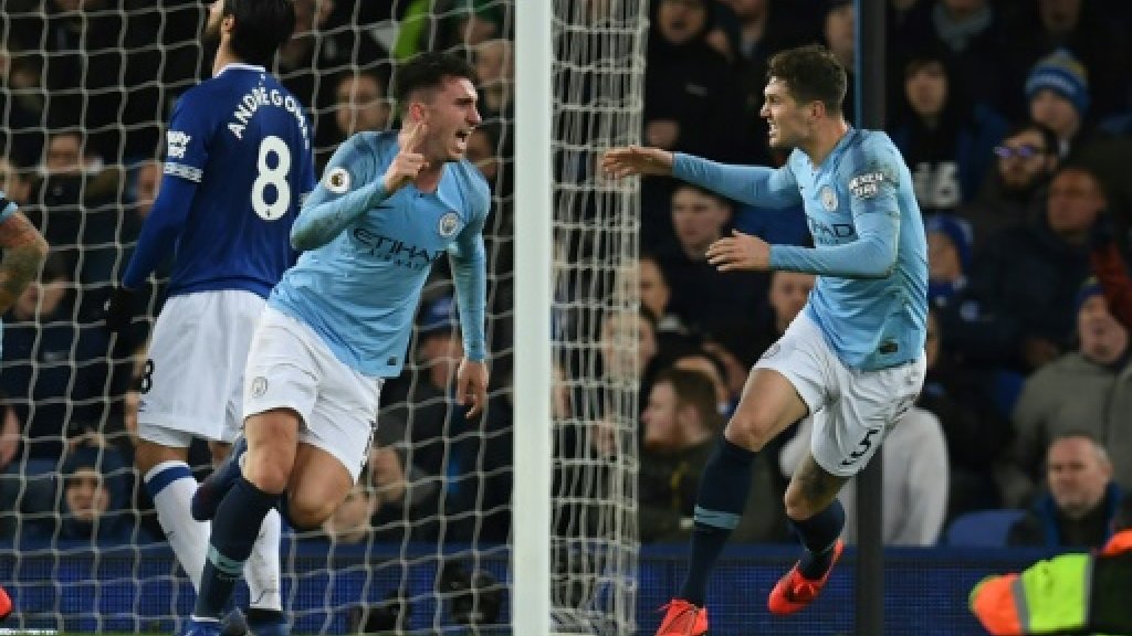 Pep Guardiola's side took the lead through Aymeric Laporte's header on the stroke of half-time at Goodison Park.