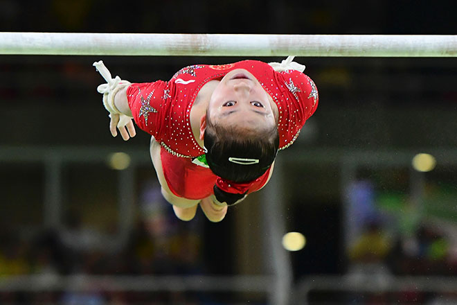 China's Shang Chunsong competes in the qualifying for the women's Uneven Bars event of the Artistic Gymnastics at the Olympic Arena during the Rio 2016 Olympic Games in Rio de Janeiro on August 7, 2016. (AFP)